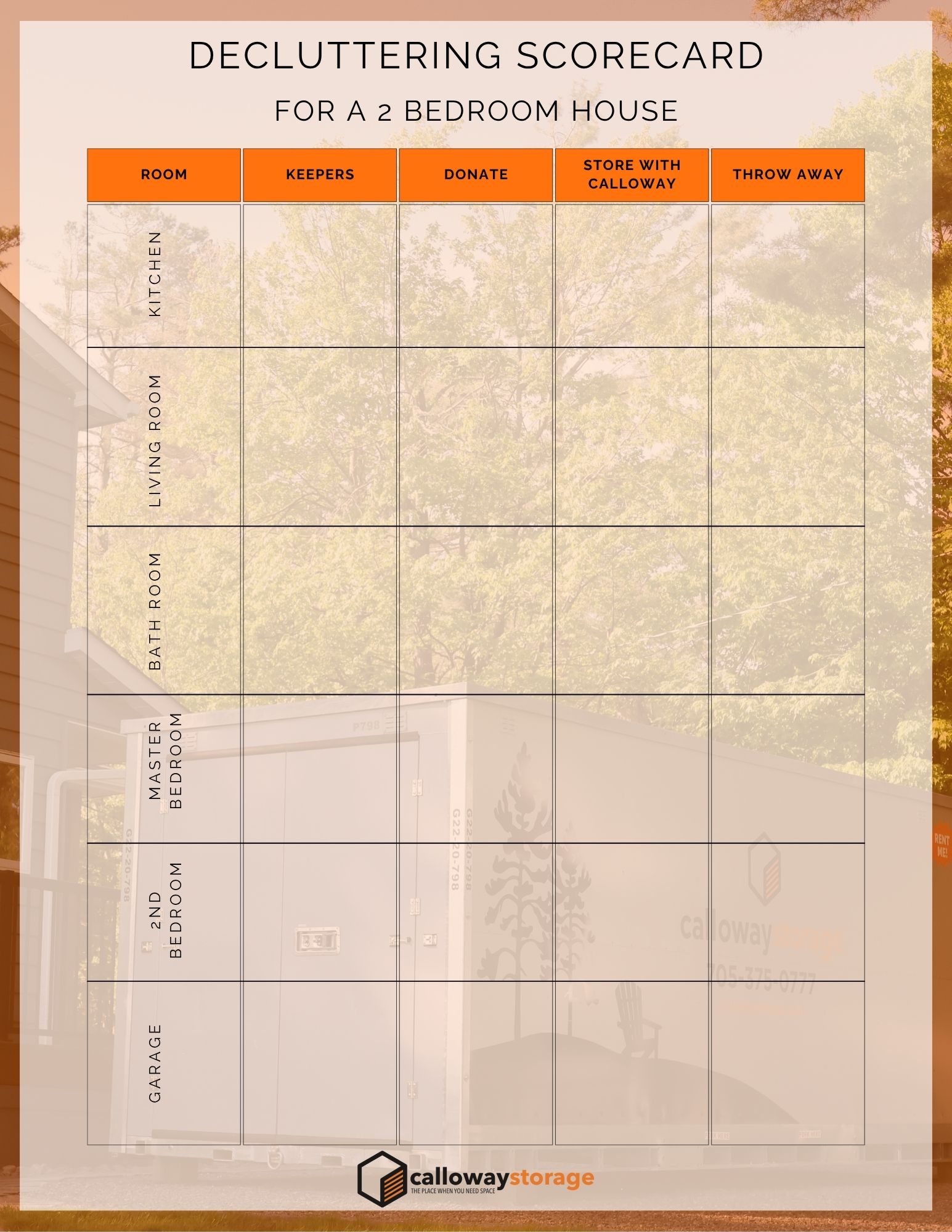 That’s right, only 100 items can remain in that space. Everything else must find a new home: donate, recycle, sell, or store it safely in your Calloway Storage container.